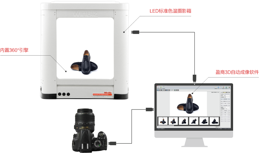 內(nèi)置5500K標準色溫LED攝影燈,還原產(chǎn)品真實色彩,360 度無暗角布光讓您輕松拍攝!